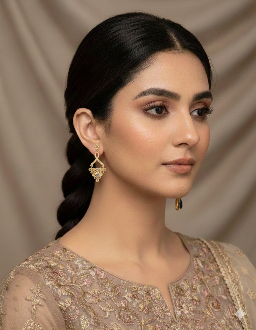 Evening Wear: Pair with a sleek black gown or an updo to let the intricate gold-work catch the light.